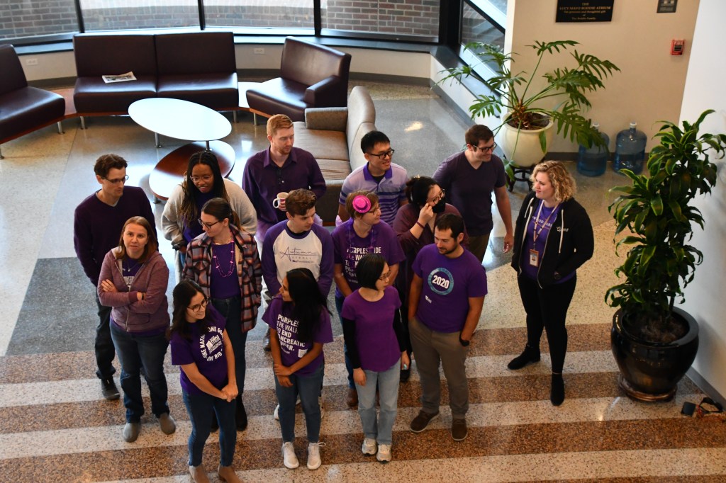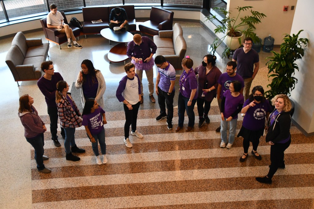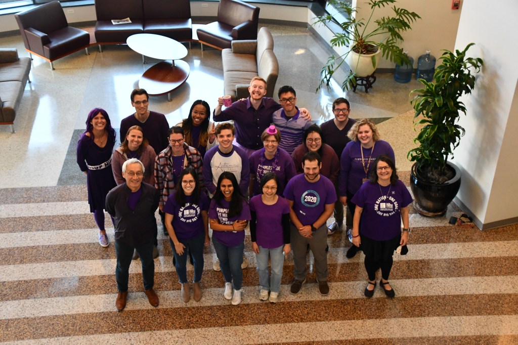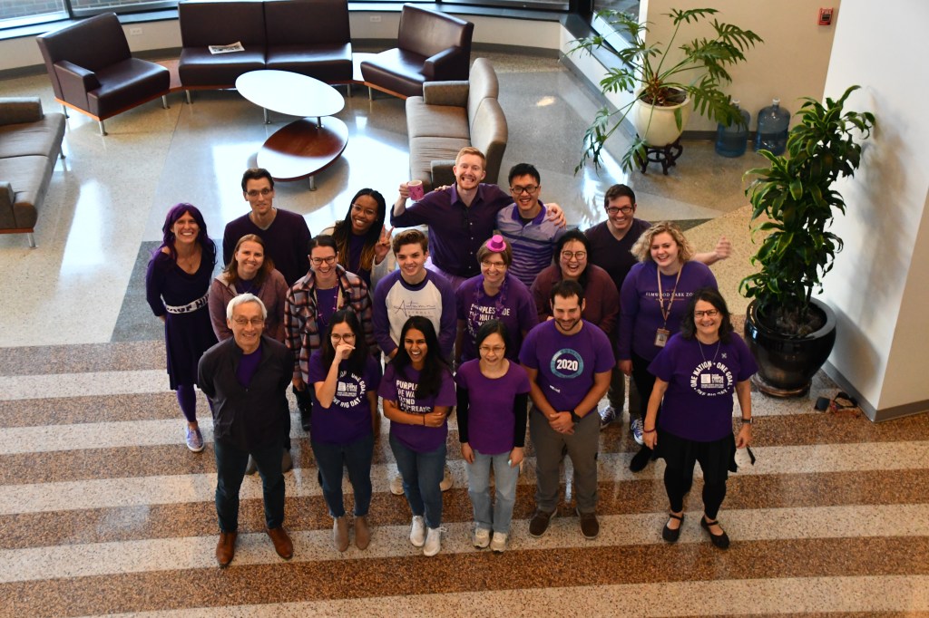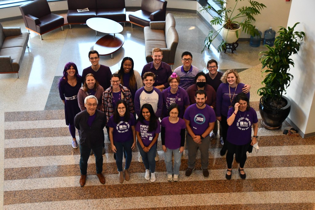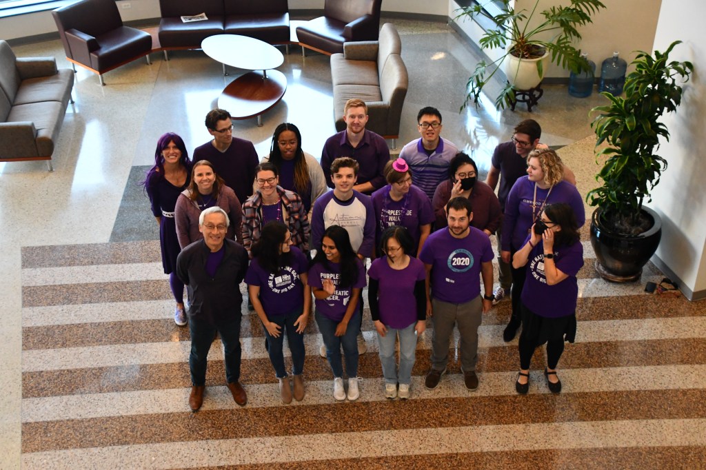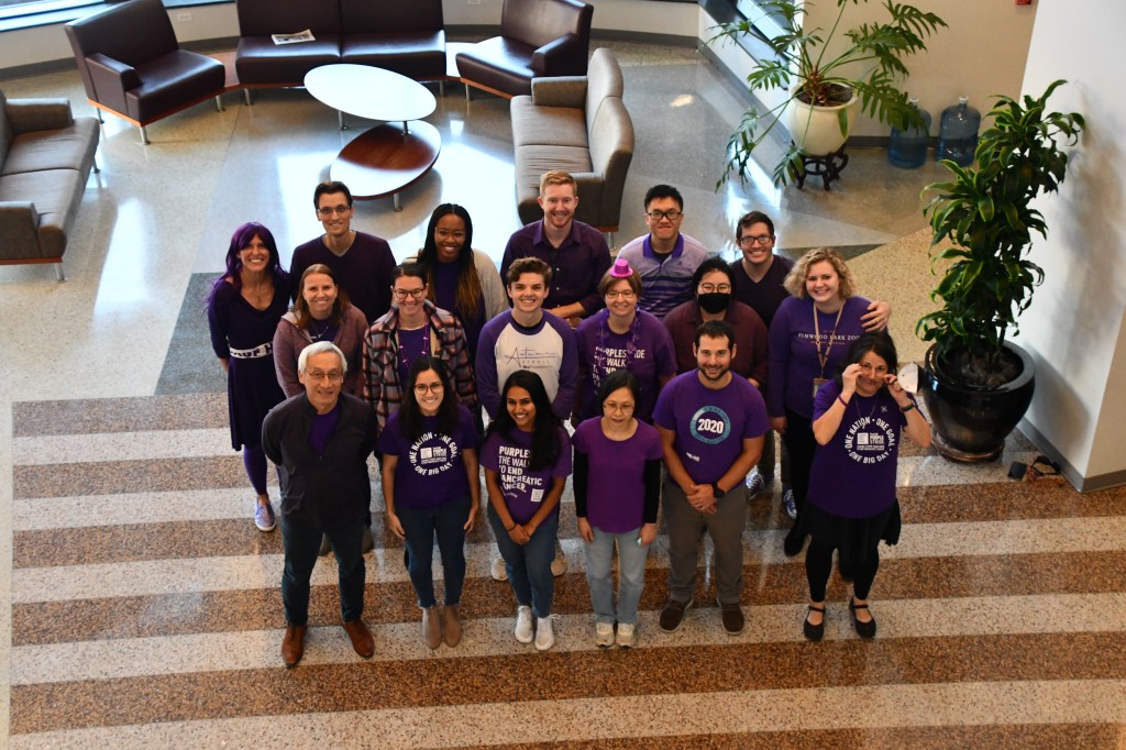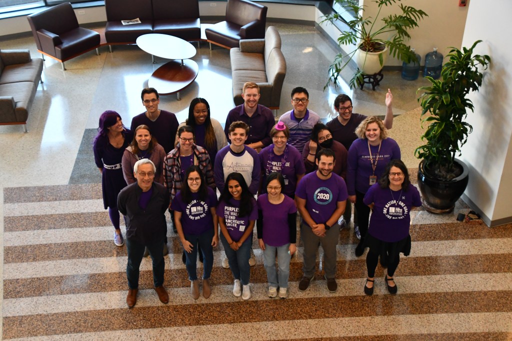 November is Pancreatic Cancer Awareness month and, per their annual tradition, the Der lab has gone purple! Members gathered in the Lineberger Comprehensive Cancer Center atrium to pose in their color.
